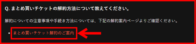 まとめ買いチケットを利用する場合、チケット購入ページの下のほうで解約できます